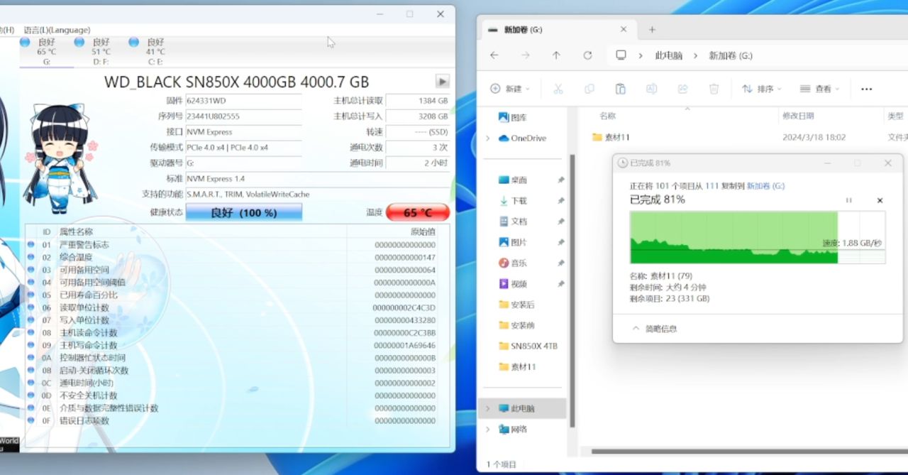 笔记本的扩容我个人更推荐西部数据的另外一款WD Blue SN580,性能虽然不如SN850X,但胜在散热表现更佳,更适合笔记本电脑。