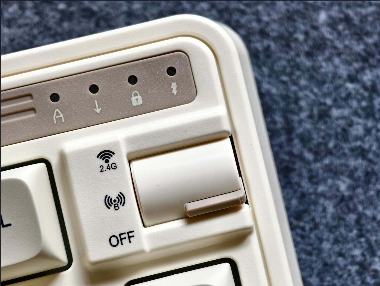 本次依旧是支持三模连接的,沿用了系列的拨盘设计。使用2.4g连接电脑,并未感知到明显的延迟。