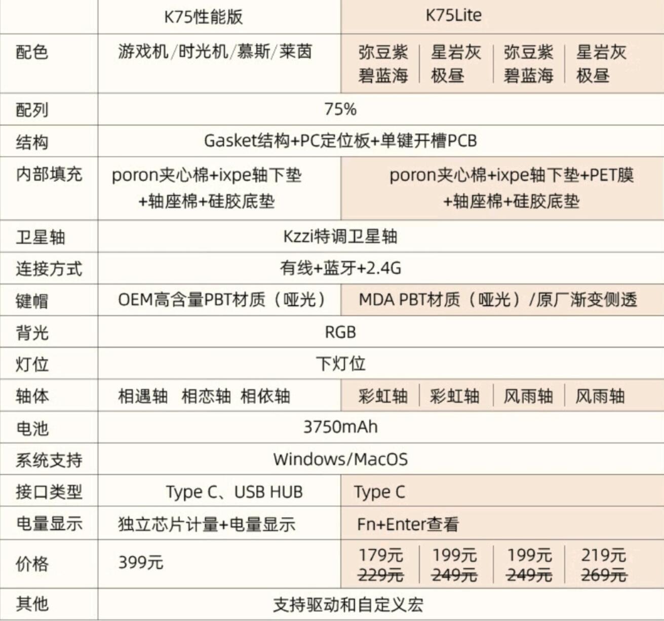 从换色,到半透键帽到加量不加价的换代升级,属于是不换汤只换药了,而如今珂芝精准的一刀,再度切出来了今天的主角:珂芝K75Lite。