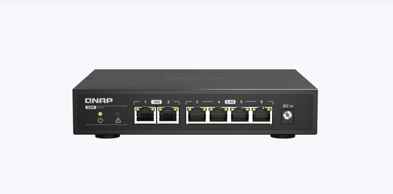 威联通QSW-2104-2T交换机介绍:4个2.5G网口+2个万兆电口,即插即用的傻瓜式交换机,仅仅只要千元出头,极具性价比的万兆交换机。