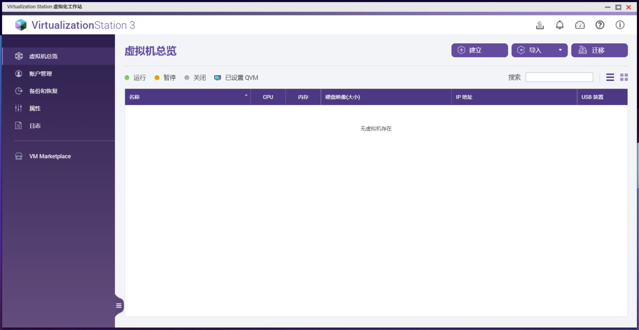 QNAP 虚拟机工作站为 QNAP Turbo NAS 虚拟化解决方案之一。可同时运行多台虚拟机并支持安装不同的原生操作系统,例: Windows 和Linux。每台虚拟机拥有各自独立的虚拟硬件,包含: 网络接口、硬盘和显示设备。