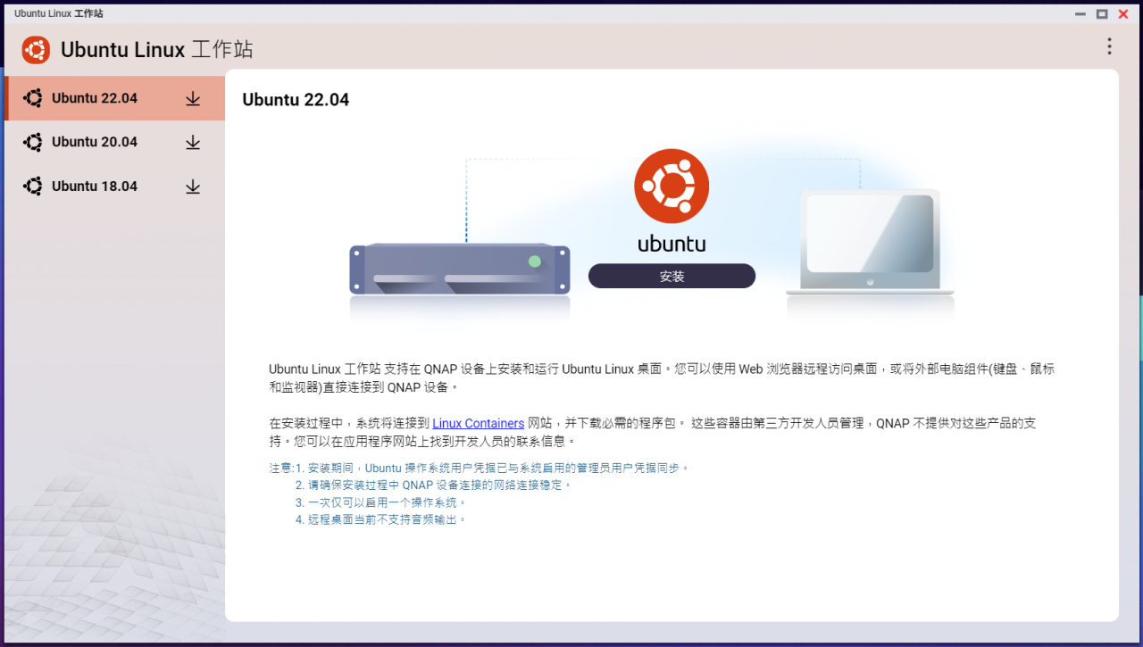 威联通还有Ubuntu Linux 工作站,它是威联通QTS系统的独家应用,借助Ubuntu Linux 工作站,可以把NAS变成一台普通Linux系统的PC。Ubuntu Linux 工作站使用虚拟化技术,将QTS系统和Ubuntu系统整合起来。这种虚拟化技术和Virtualization Station有着本质的不同,它归根结底是一种进程和资源隔离的技术。Ubuntu系统下看到的是物理硬件而不是虚拟化的硬件,因此理论上系统的性能也要好很多。