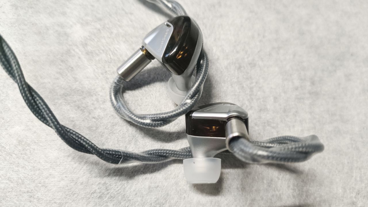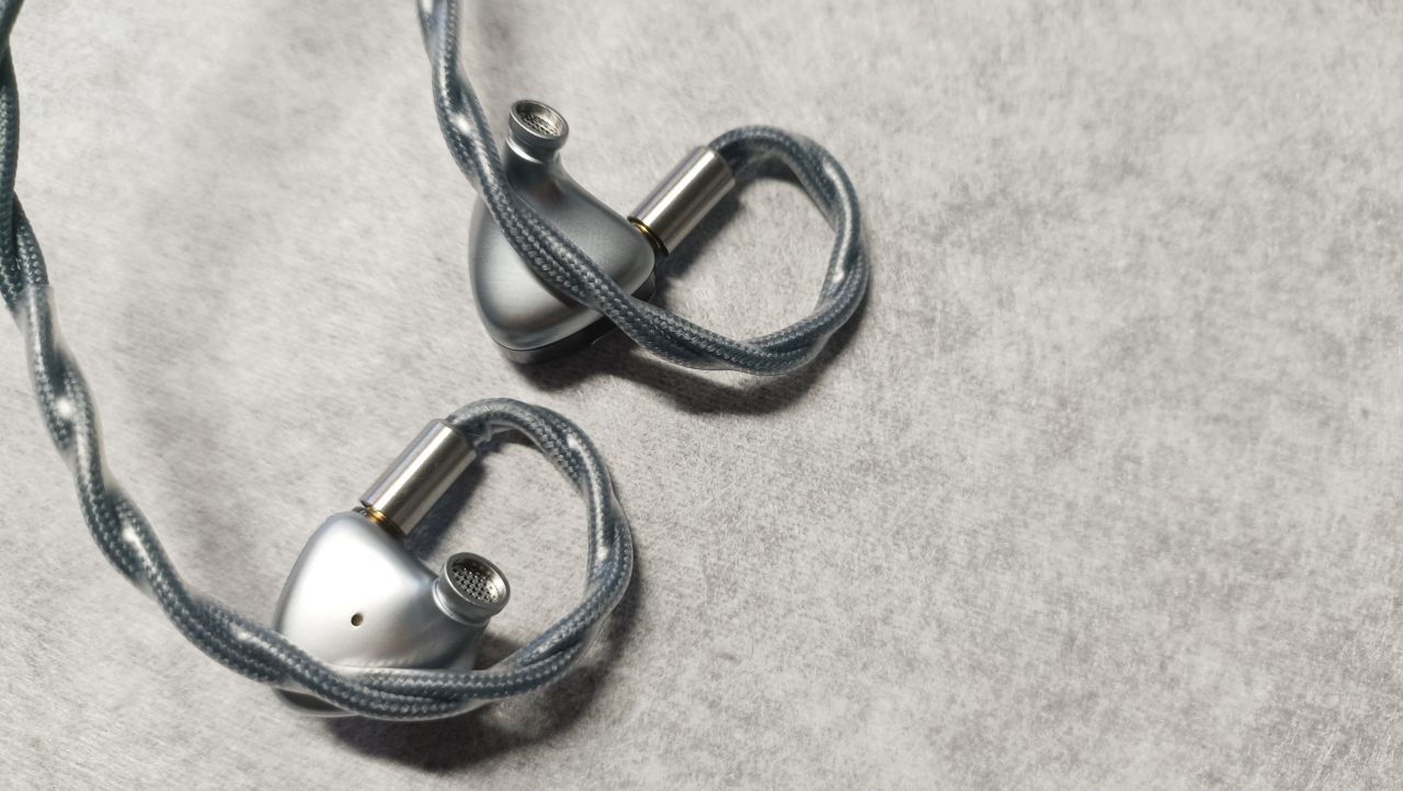 耳机配色有月银与夜灰两款配色,我手中的这款为3.5mm月银,腔体外壳为锌合金CNC材质与深茶色的PMMA两部分组成,银色与黑色之间的碰撞并不突兀,整体看起来有一种低调且优雅的感觉。