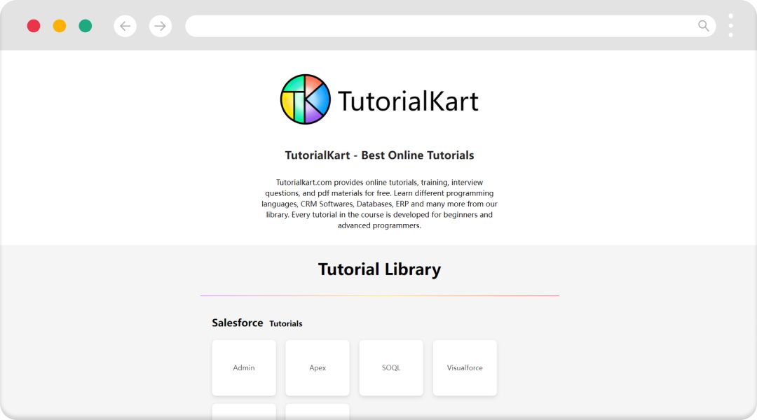 Tutorial Kart是一个相当完备的在线学习网站,免费提供教程、在线培训、课程、资料和面试题;课程中的每个教程都是为初学者和高级程序员开发的,方便他们学习不同的编程语言,CRM软件,数据库,ERP 和其他许多课程。