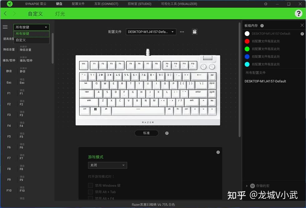完毕总结:作为一把量产的游戏机械键盘,却有着客制化水准的设计做工以及自由度,金属上盖、75%配列、Gasket结构、热插拔轴体这些主流客制化配置的加入,结合雷蛇键盘自身独有的多功能设定以及炫彩灯效,雷蛇黑寡妇蜘蛛 V4 75%键盘无论是日常使用体验还是游戏性方面的表现都是非常强悍的存在。