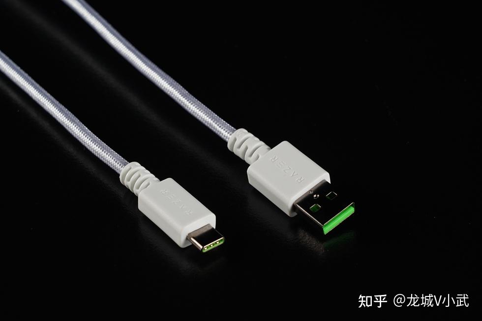附带的数据连接线长度约为1.8 米,接头为USB+Type-C设计,上面还有 RAZER文字Logo, 另外线材不是很粗且质地柔软,表面包了蛇皮网保护。