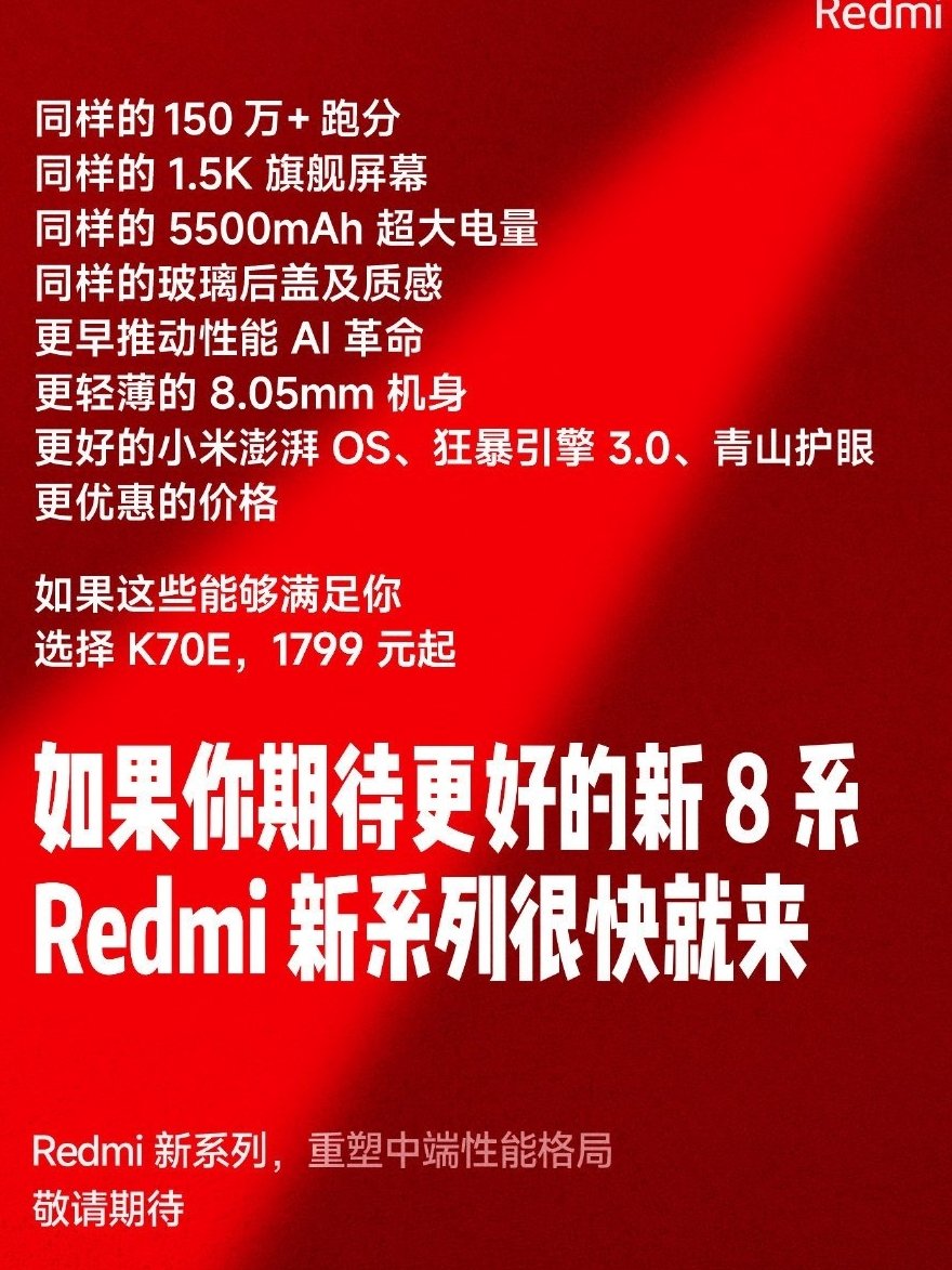 - 芯片:首发骁龙 7+ Gen 3 移动处理平台(台积电 4nm,CPU 为 1× 2.8GHz Cortex-X4 + 4× 2.61GHz Cortex-A720 + 3× 1.9GHz Cortex-A520,GPU 为 Adreno 732),LPDDR5X 内存,UFS 4.0 闪存,9140mm² 天工散热 VC;