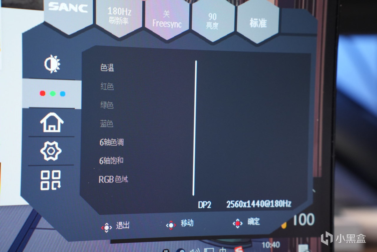 显示器在主控方面也做了很多设置,包括但是不见限于6轴的饱和度多种游戏模式的选择,以及很丰富的调节区域。