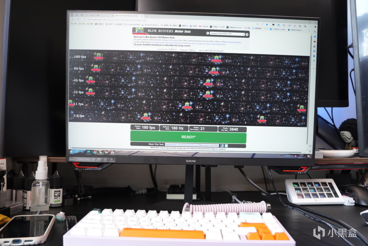 在显示器刷新方面,我们可以打开UFO看一下,刷新率,在速率低的时候可以其实其中的差别不大,但是在高速率的时候可以明显的看见刷新率的差距,高刷新率的屏幕可以让用户在游戏过程中,更早一点点的发现敌人的身影,这一点很重要,哪怕是多一点点,也是非常方便的。
