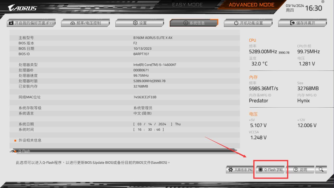 ● 第三步,按F8进入Q-Flash,选择U盘中的BIOS固件文件。