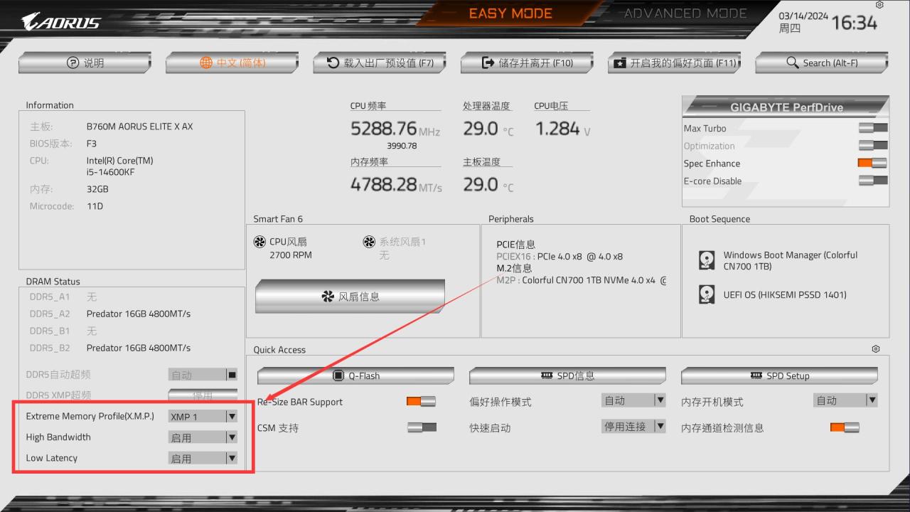 简介:考虑到下面有跑分部分,为了方便大家对比数据,这里选择常规的6000MHz频率内存作为搭配,仅开启XMP+大带宽+低延迟模式。