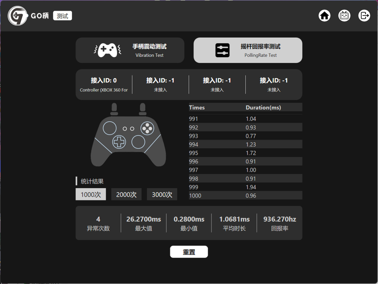 在有线模式下,无线模式下,他的摇杆回报率都在1000hz上下,不仅在fps游戏里比较跟手,而且他的回中也比较稳定迅速