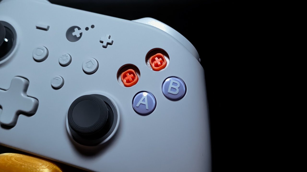我手里这款手柄是复古白配色,相比较于黑色和纯白色,这款手柄的颜值似乎也更为的抢手,布局方面给了玩家们两种选择,你可以选择xbox的布局,同样也可以选择ns的布局,只需要用附赠的拔轴器轻轻一把再简单的安装上就可以了。