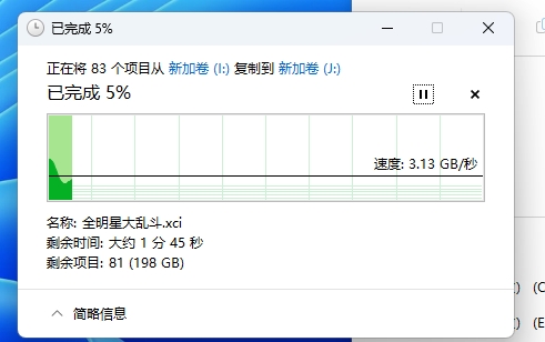 最后呢就是最直接了当的,我拖了一个大概208G的文件夹来实际考验他的速度,大家可以发现在接近200G的文件下,它整体的传输速度都十分之快,基本都在3—4G之间,传输完毕大概只需要两分钟。所以如果你日常经常有这种传输文件的需求还是可以满足的