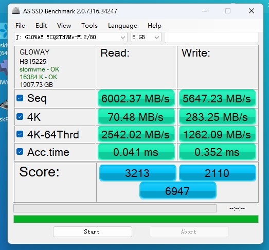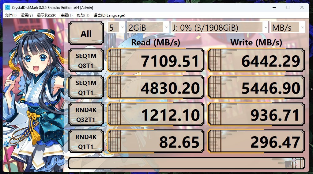 后面我们再使用的asssdbench mark,相信大家看到我测出来这个数据多少是会有点惊讶的吧,不管是普通的读写速度还是4K他这个数据都可以说是第一梯队了,和我之前用过得三星990 Pro 一个速度一个水准