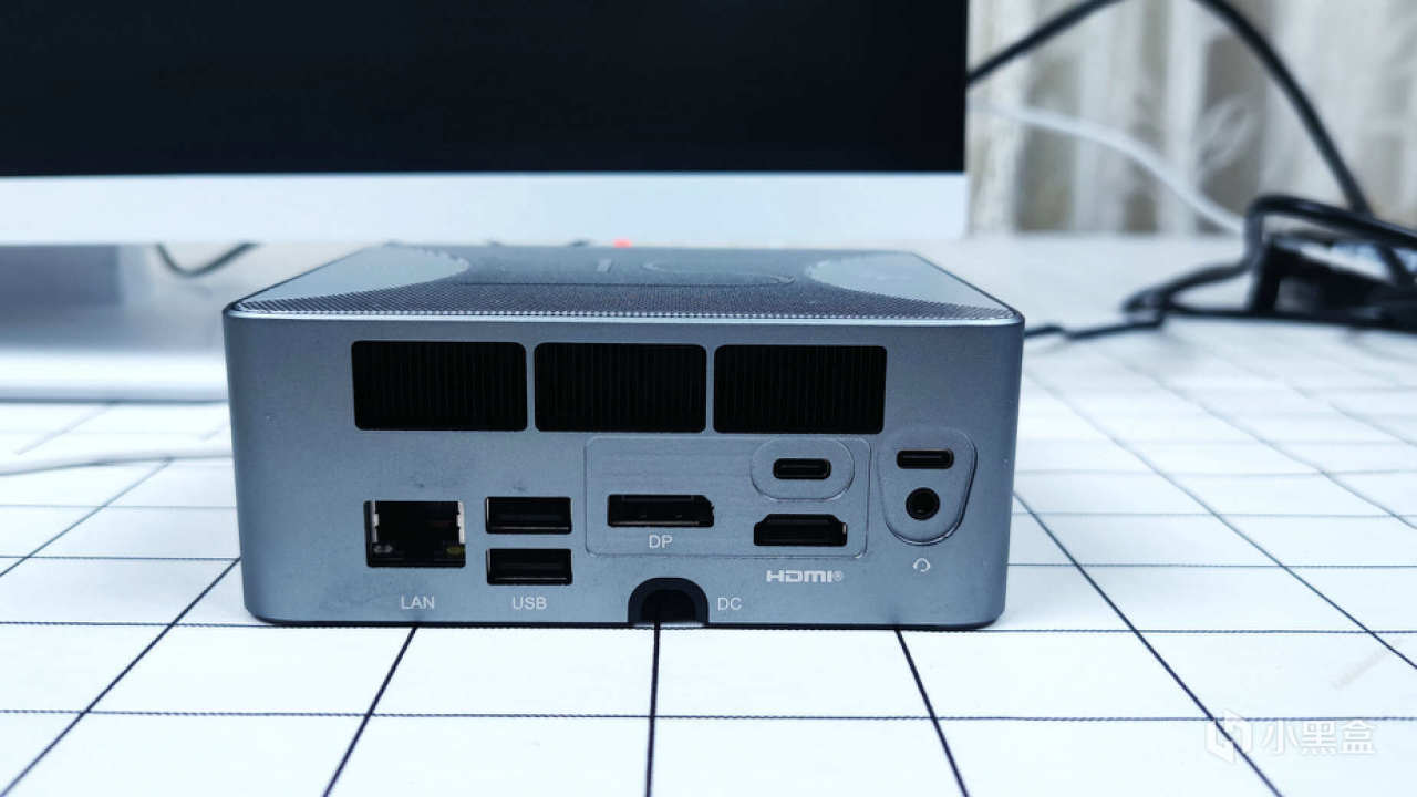 在它的身上,可以看到一些笔记本,电视盒子之类的元素。接口方也非常丰富,不过呢,它没有独显,所以体积方面也相对比较小巧,大小也就跟3.5英寸硬盘差不多。