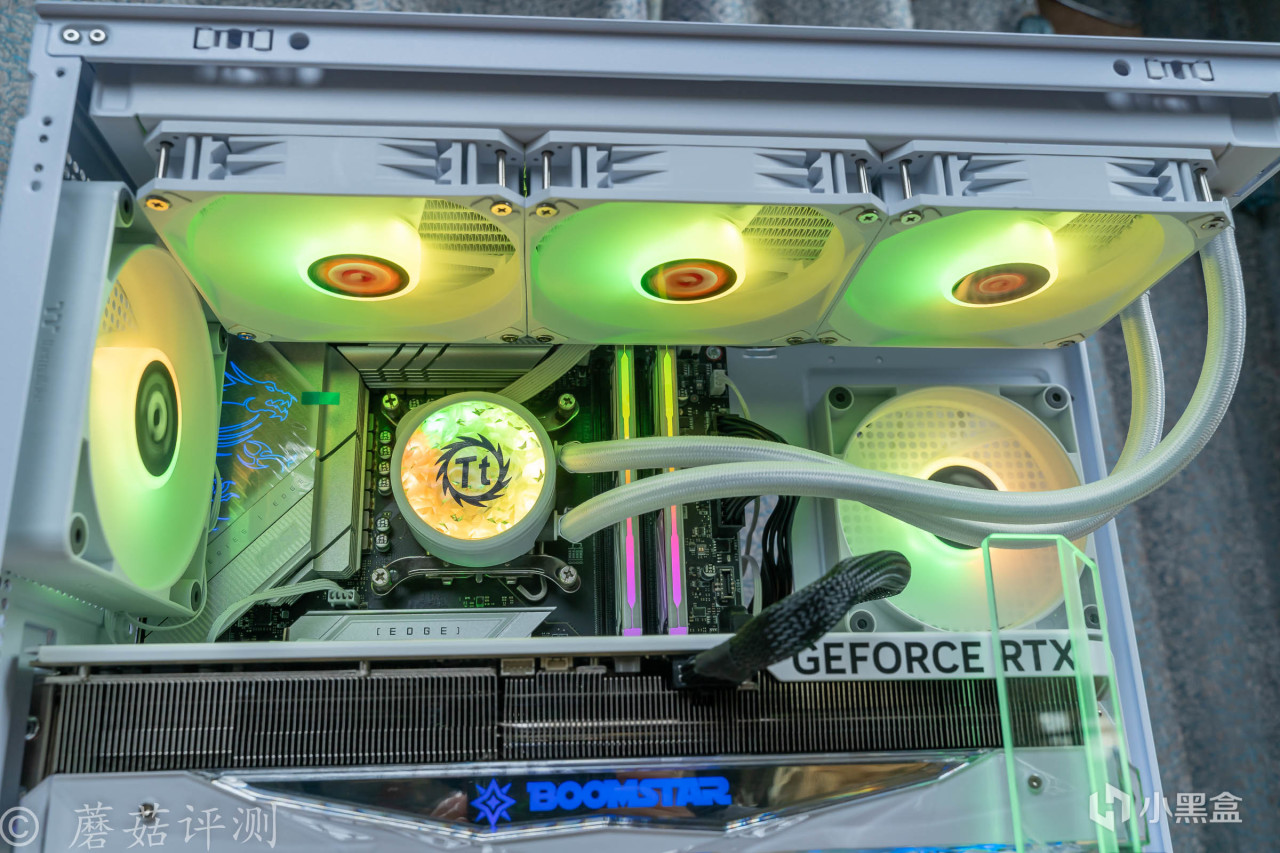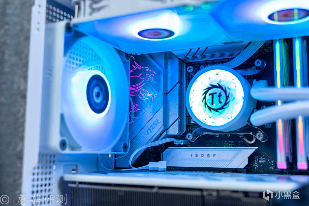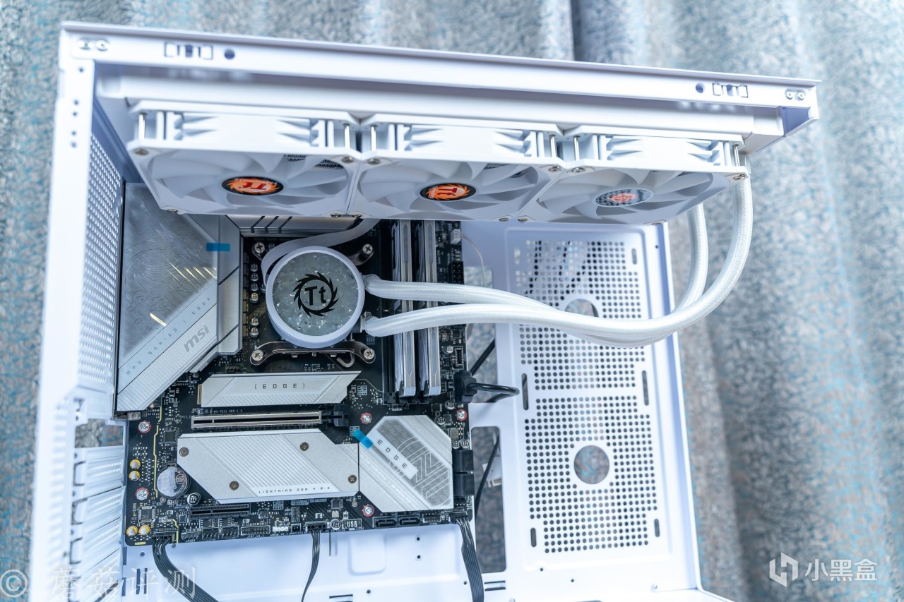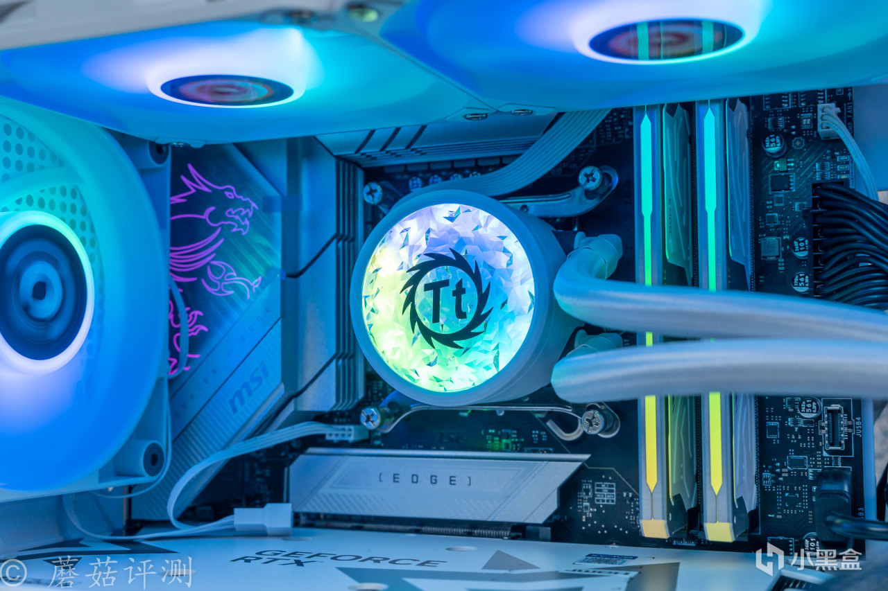 ▼水冷用得是TT的斗龙360一体式水冷,白色版,这款水冷的颜值很漂亮,散热性能表现也十分不错。