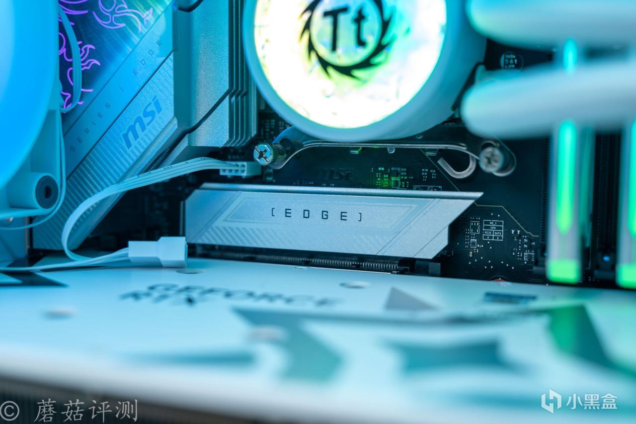 ▼主板是微星的B760M EDGE TI,这块主板的综合表现非常出色,供电部分采用12+1+1相的规格,其中核心供电12相,清一色的75A的DrMos,用料非常给力。颜值方面,主板正面覆盖有大量银色的金属件,表面做工很精致,涂装很漂亮,在主板左侧供电散热件上面,还有一块塑料件,中间有微星经典的龙标LOGO,支持ARGB灯效,支持主板控制。