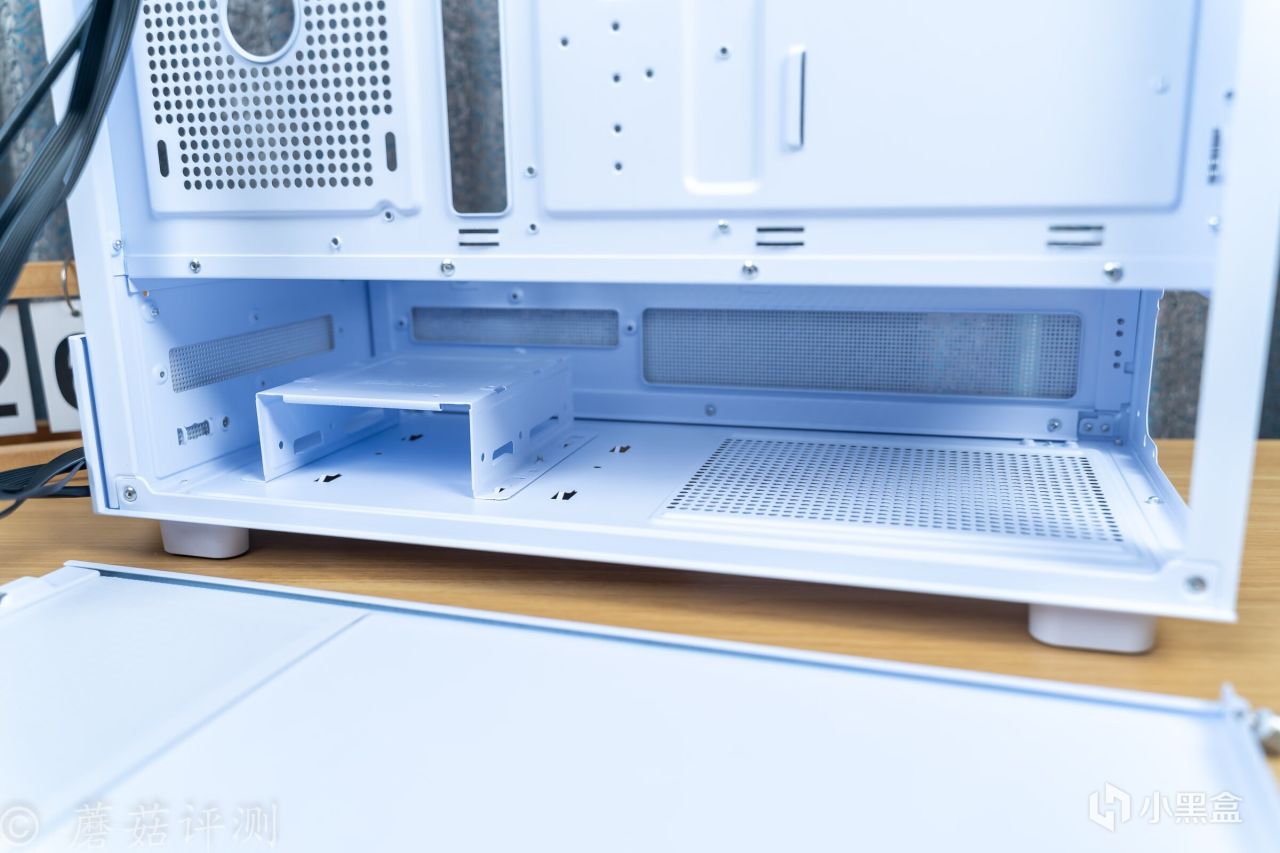 ▼机箱底部,电源仓的空间还是非常充足的,左侧是硬盘仓,用于安装硬盘。