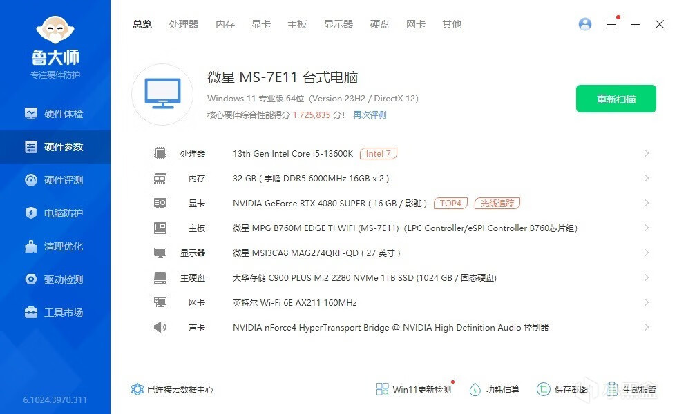 ▼蘑菇这里准备了一套13600K搭配RTX4080 Super显卡的配置,白色的。
