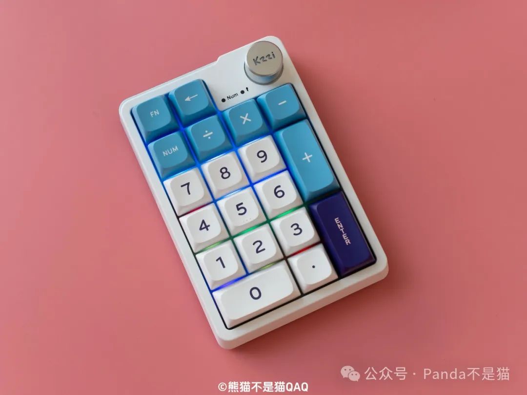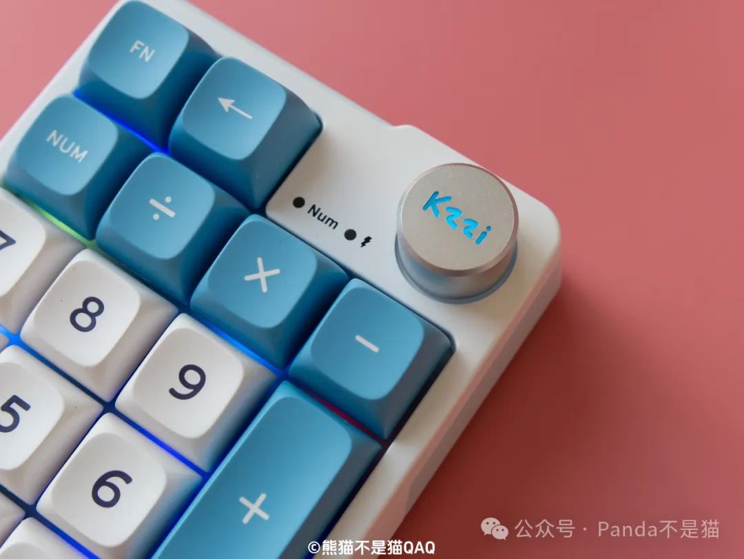 再看数字键盘K20,整体设计思路和k75lite相差不大,作为数字键盘k20还带了一个旋钮,具备音量调节、代替鼠标滚轮这样的作用。例如在需要一边翻页一边做批注时,就可以将其设置为滚轮使用。