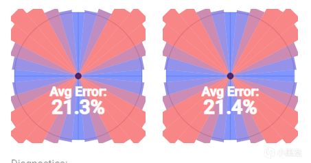 常规测试,失落遗迹采用的是方圆形调教(和纯圆调教没有优劣之分),三种连接模式下画圆测试错误率都如下图所示,这个错误率指的是画圆的错误率,并不会影响游戏体验,我自己的感觉是方圆调教更适合格斗和赛车游戏,这个因人而异。
