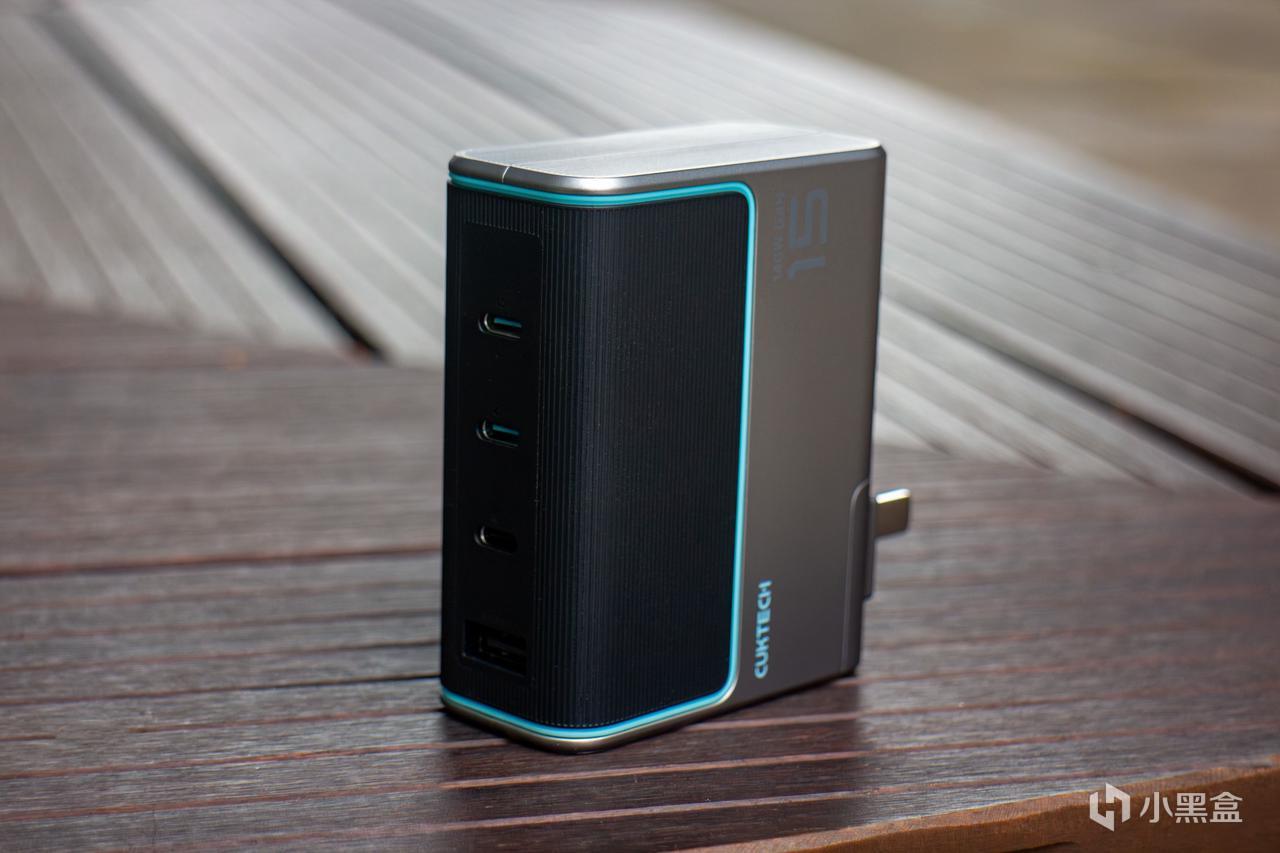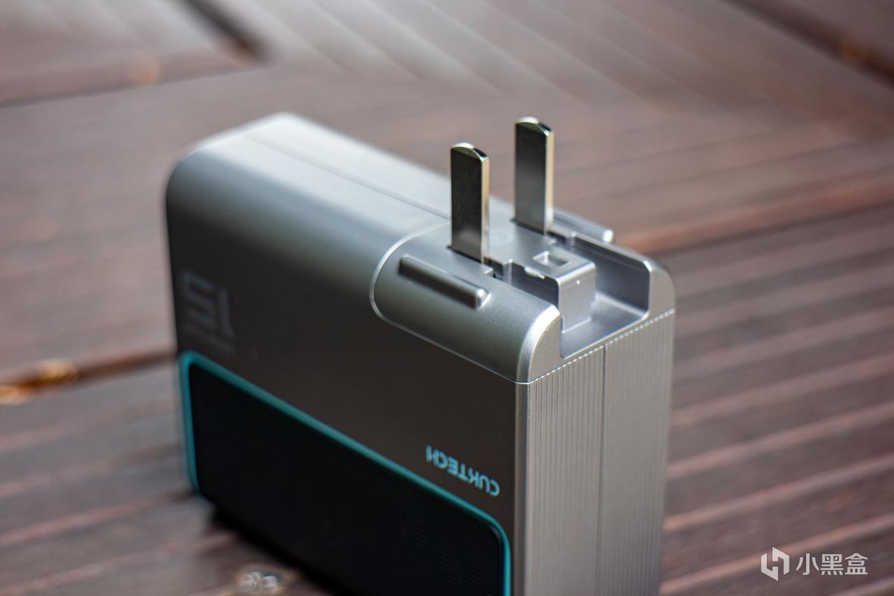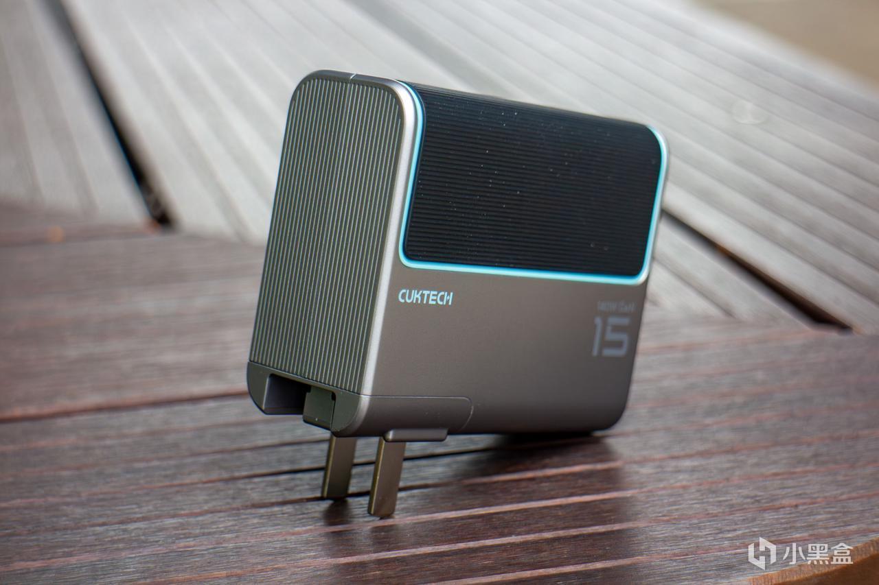 15号充电器也遵循酷态科的家族设计语言,都是钛灰色金属质感的喷漆+黑色格栅工程塑料的防滑纹理。这细节,好文明。