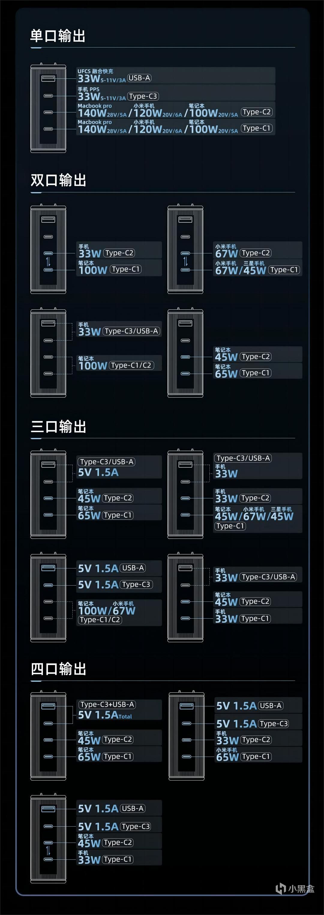 双C口可以支持笔记本的100W和手机33W(这个33W估计是给小米手机的)