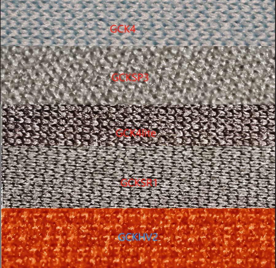 GCKHV2和GCKSP3的手感相近,都比较亲肤细腻。但是GCKHV2质感和稳定性比较好,不容易压陷,个人觉得是这四款中用的最舒服的一款。