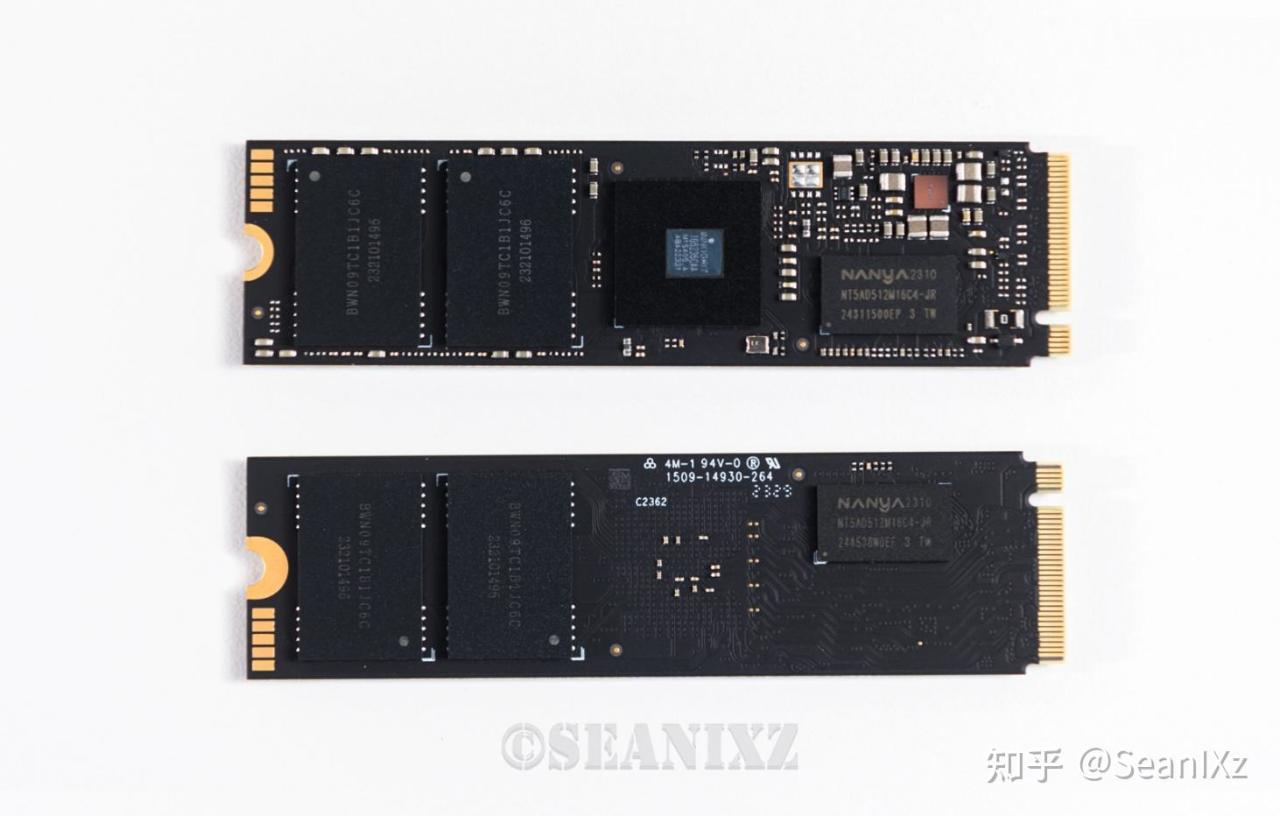 DRAM缓存颗粒:南亚科技NANYA NT5AD512M16C4-JR,正反面各有1颗,单粒容量2GB,一共4GB缓存。