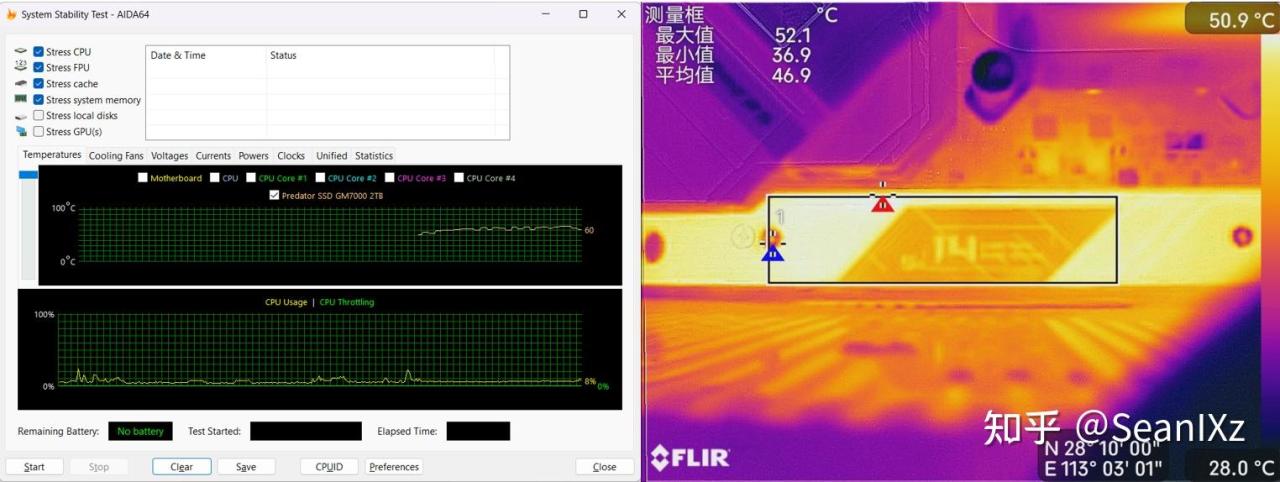 温度方面也分别在裸盘和配备马甲与石墨烯复合散热垫的情况下进行了一下对比测试。