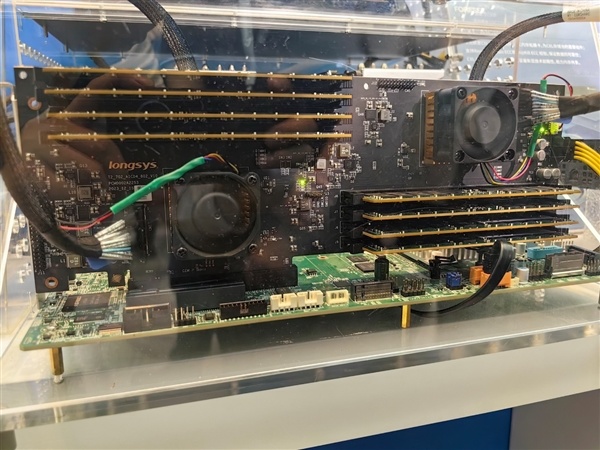另一种形态则是AIC扩展卡,容量可以做得更大,现场展示的DDR4版本就已经做到了512GB,一个机箱插入8块就可以达到4TB,非常适合用来做存储池。