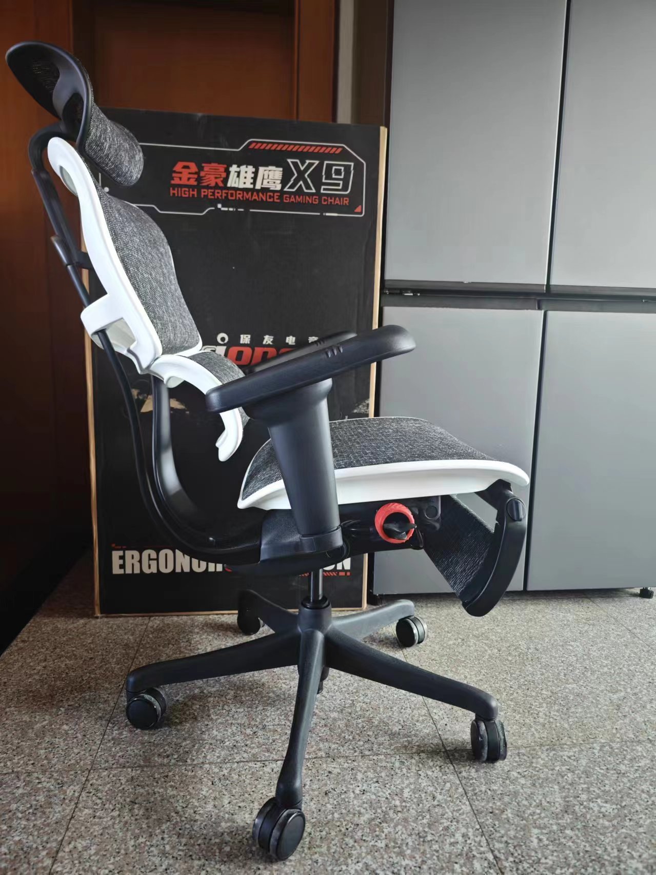 雄鹰X9和保佑其它工学椅子最大的区别在于电竞风的外观设计,保友其它工学椅过于商务风,小航母之前用的金豪e就被朋友一天调侃成航总。雄鹰X9采用黑网白框设计,淡化了商务风,增加了对比度。让整个椅子充满一种战斗的电竞气息,看上去更年轻,更有活力,符合年轻人审美。当然也没有过度的加入一些花哨的元素,不至于整出鬼火少年的感觉,千元椅子高质感的腔调还是保留着的。