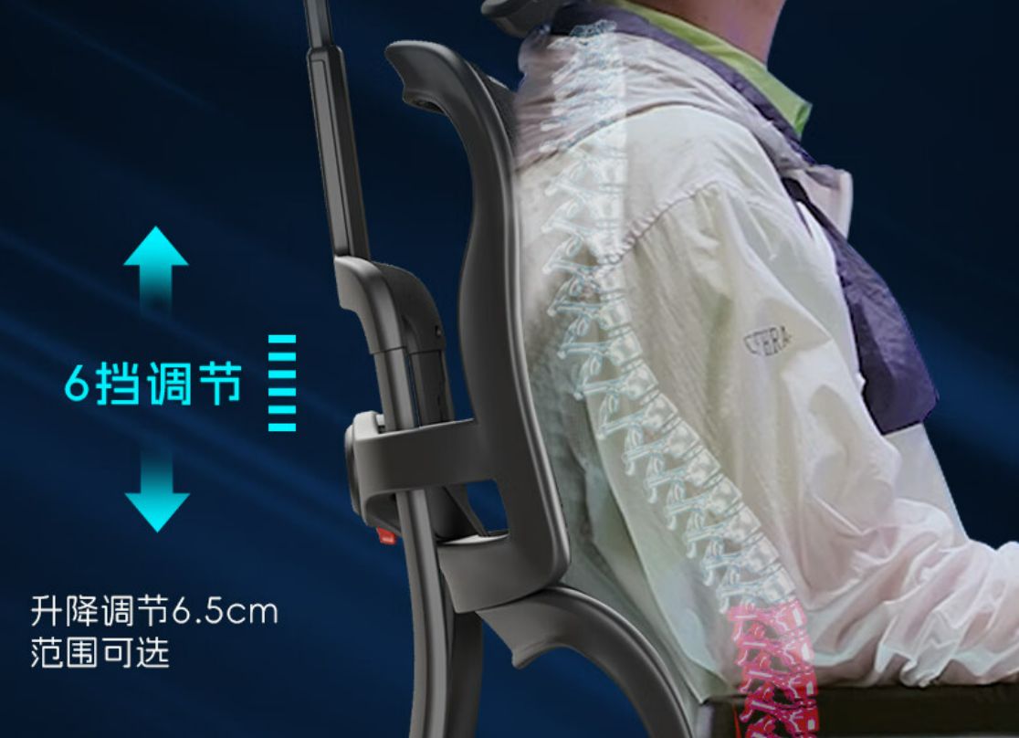 雄鹰X9腰背还实现上下6.5cm的高度调节,满足不同身高的用户,这个功能很多椅子都有。但是下一个功能,即使在一千出头的人体工学椅中都很少见。雄鹰X9的腰部模块还能够根据用户的需求调节弹力,最大40%的力度调节。