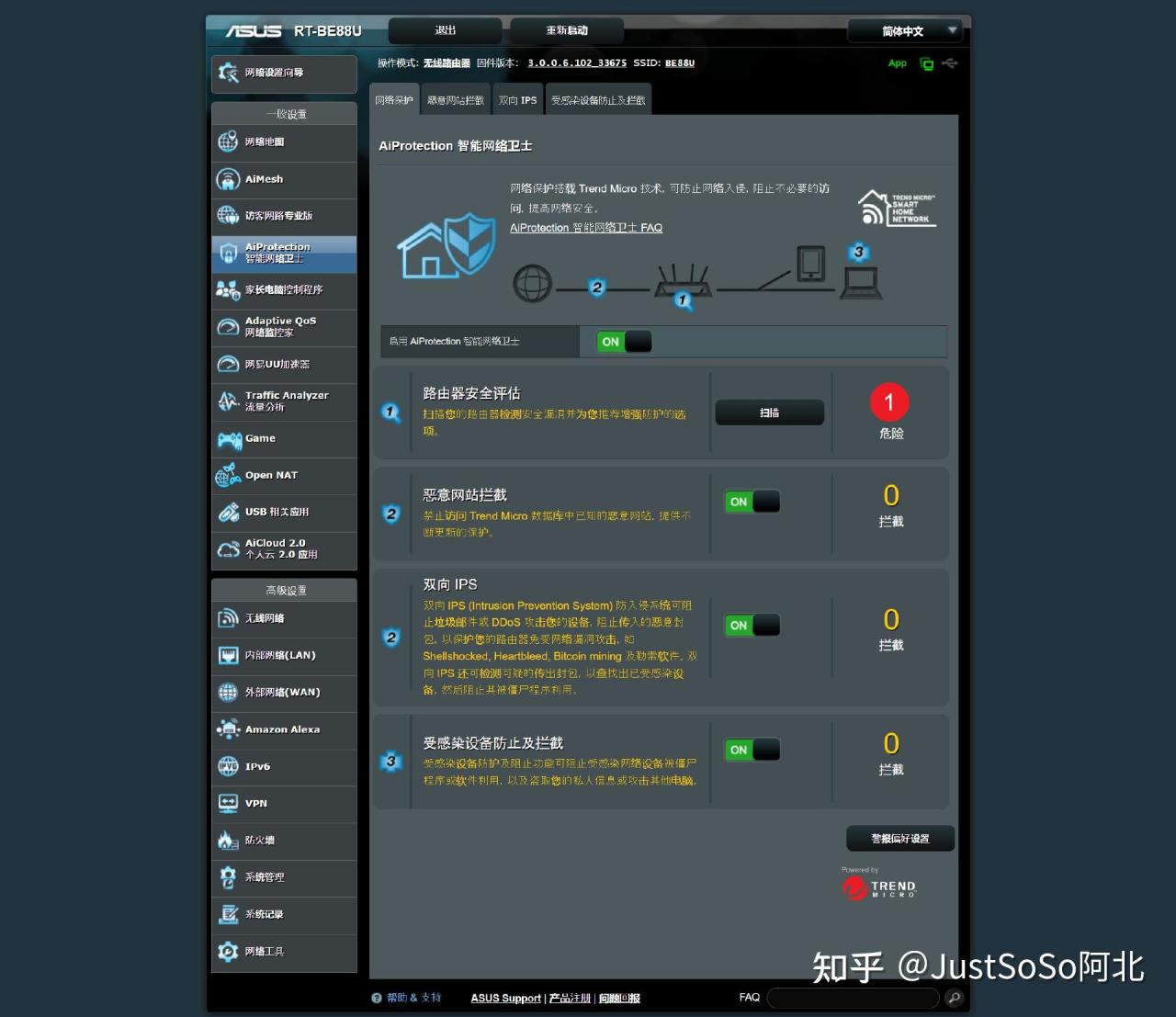 ▼AiProtection是华硕路由器的一项安全功能,能够保护用户的网络连接免受各种网络威胁。该功能由华硕与全球领先的网络安全供应商TrendMicro合作开发,能够实现扫描路由器检测安全漏洞并增强防护;拦截恶意网站;阻止垃圾邮件、DDoS攻击等等,你的华硕路由器远比你以为的强大。
