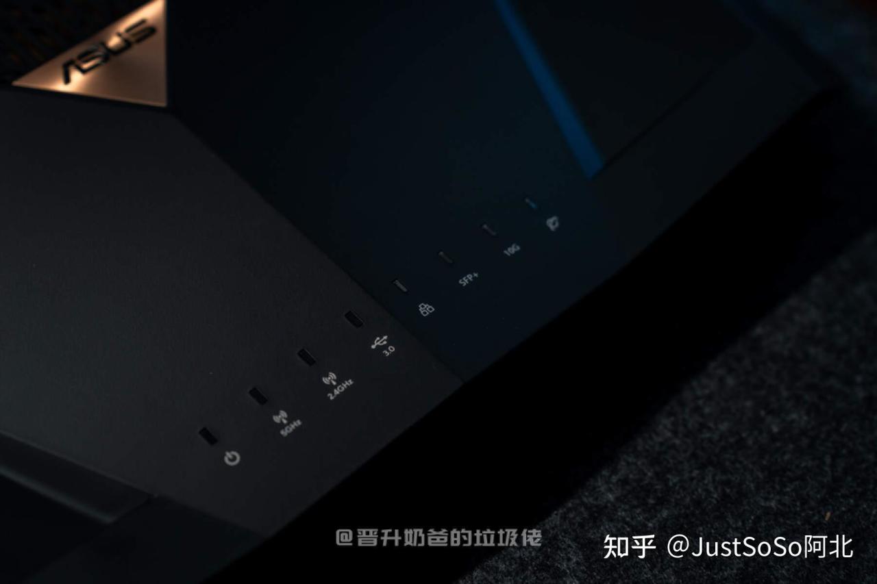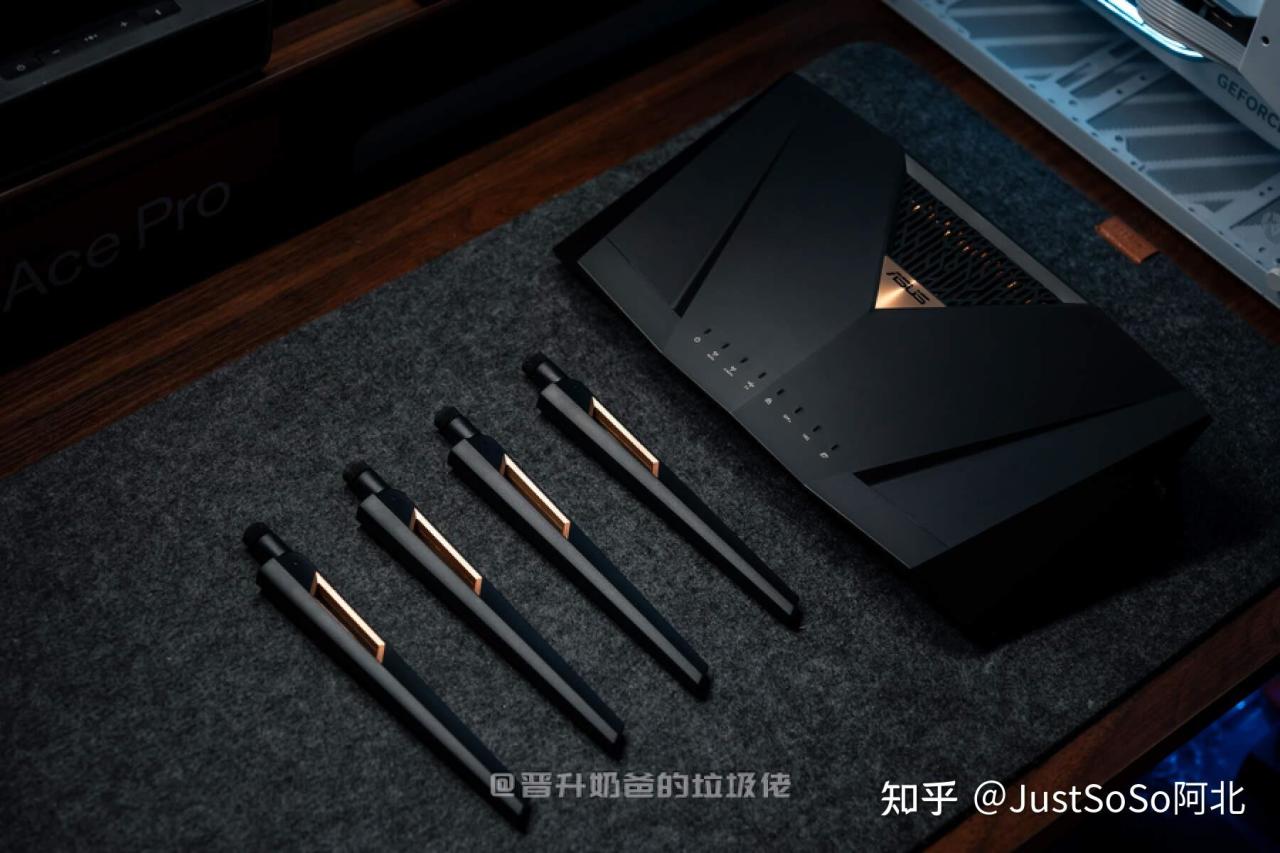 ▼相比前代AX88U,LOGO由金色字体并为了金色背景黑色文字,颇有点睛之笔。