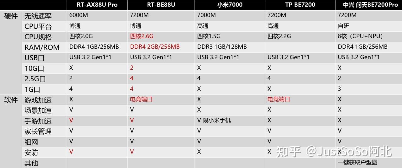 ▼RT-BE88U首发价格1999元,相较目前在售的RT-AX88U Pro仅仅贵了100元,按照华硕一贯的定价测率来说相当有诚意了;CPU为拨通BCM4916,4核4线程最大频率2.6GHz,2GB DDR4 RAM、256MB ROM;无线模块为博通BCM6726、网卡模块为BCM50904。
