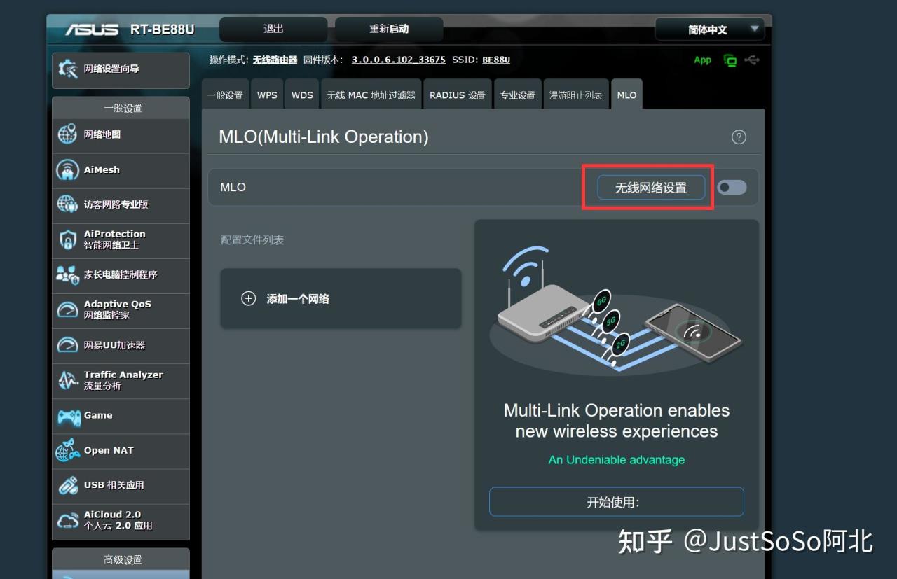 ▼进入MLO标签后点击无线网络设置功能按钮。