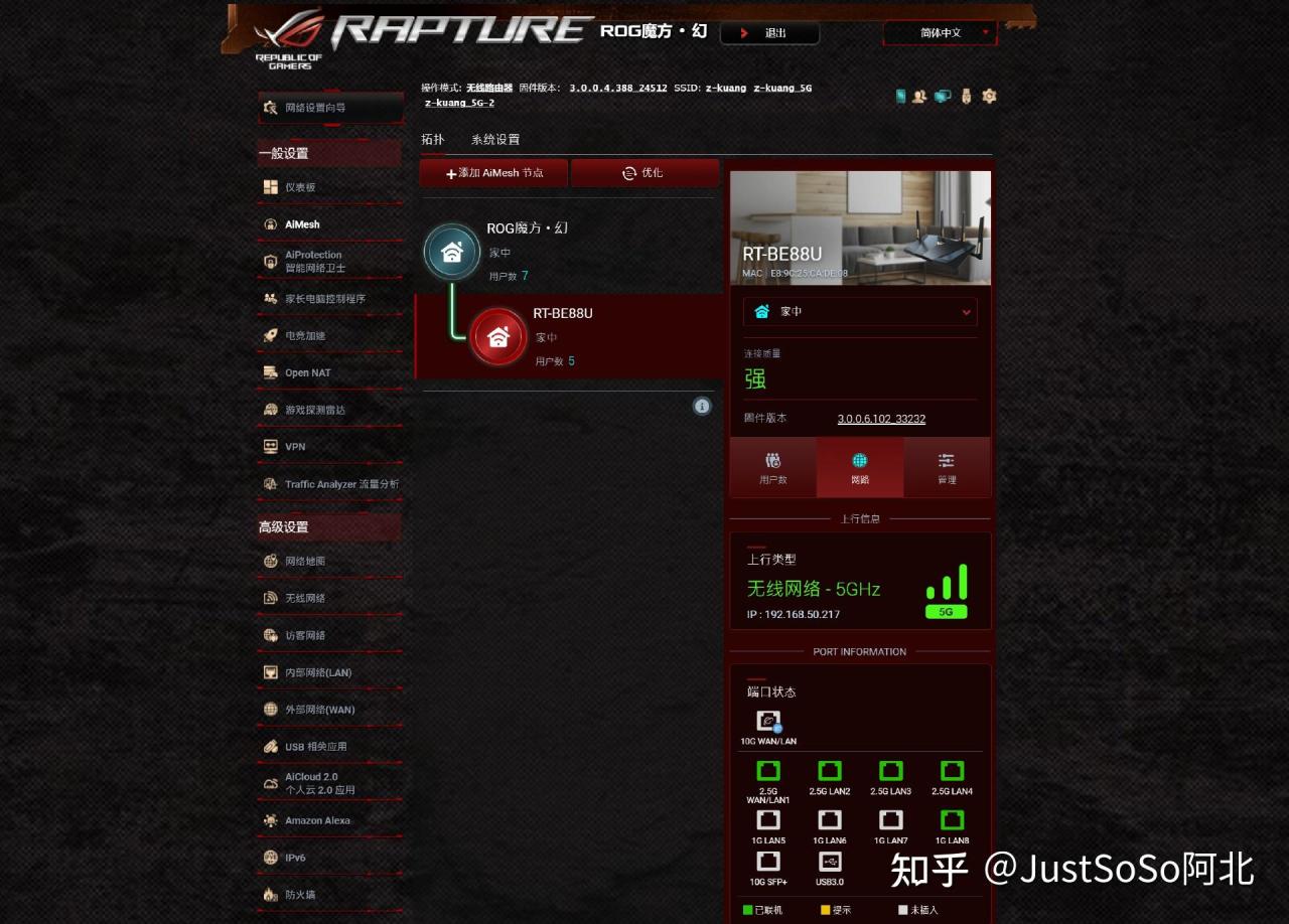 路由器用BE88U,立省一个高级交换机,真香。