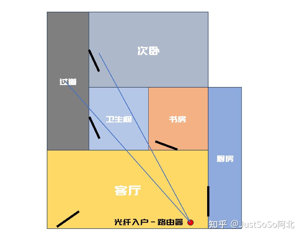 ▼多说无益,还是实际测试来的更实在一些,下面是我现在所租住房子的户型图。