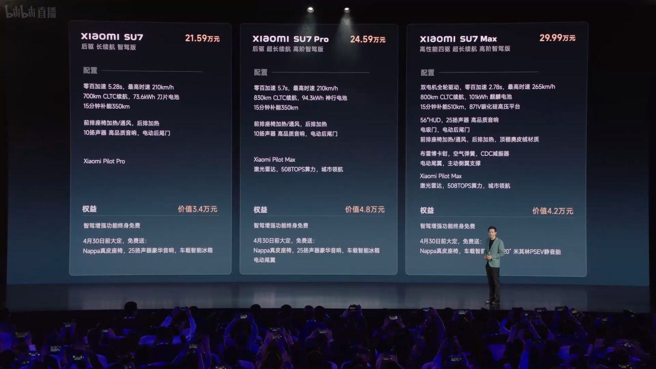 3. 小米SU7 2024款 四驱超长续航高阶智驾Max版: