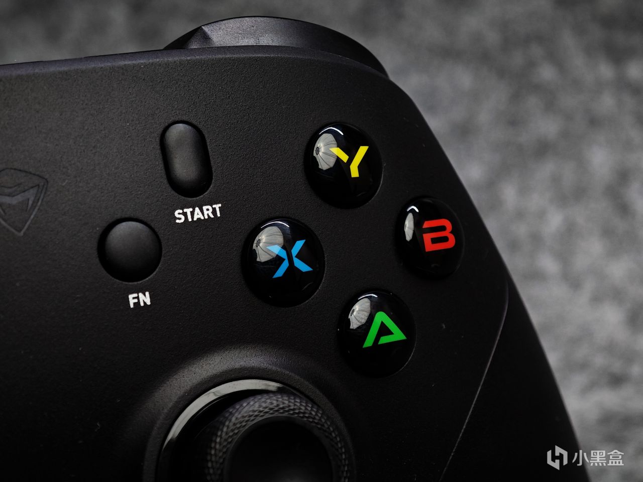 ABXY按键方面,采用的是XBOX的排列组合,虽说支持NS,但重点还是以PC玩家为主,如果想要以NS布局游玩也可以通过组合按键进行更换。说回按键本身,整体采用机械微动,相较于导电胶来说触发更快,手感更轻;按键表面采用光滑的处理方式,比较容易沾染指纹。