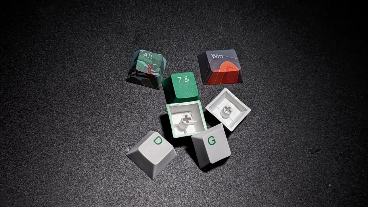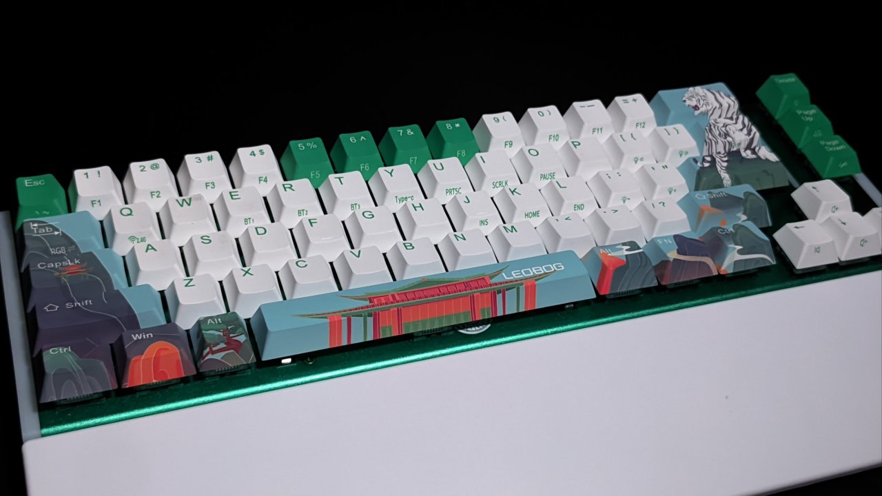 键帽上采用的是热升华工艺,颜色细腻鲜艳,没有什么色差,整体上是白绿色的搭配,字符还是比较好看的,并且白虎望岳这款也有客制化的味道。