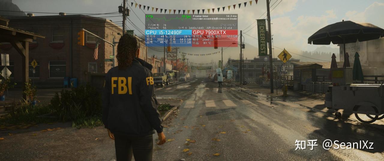 I5-12490F:FPS平均78,CPU 48%负荷。