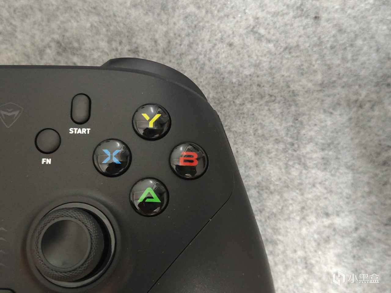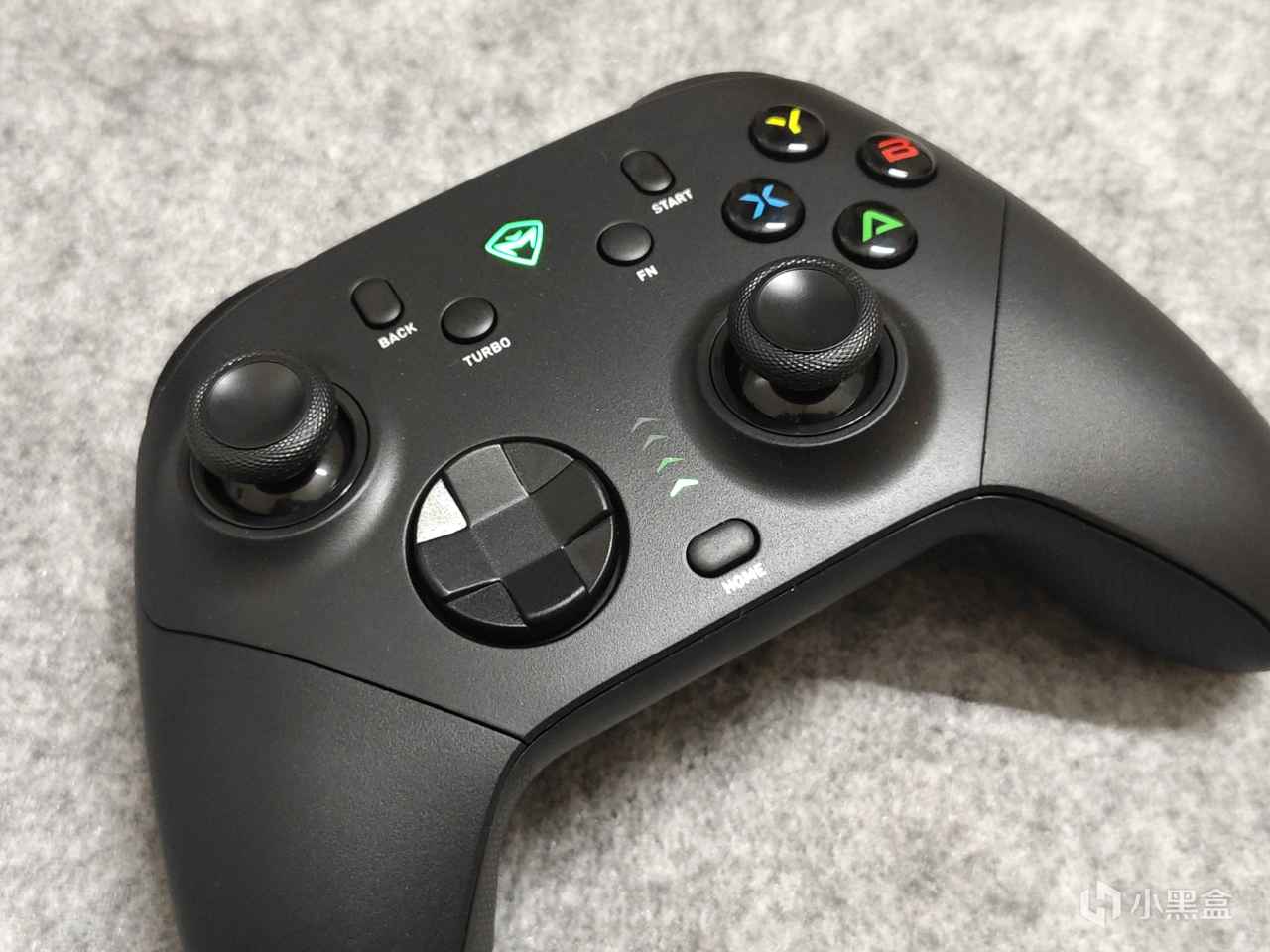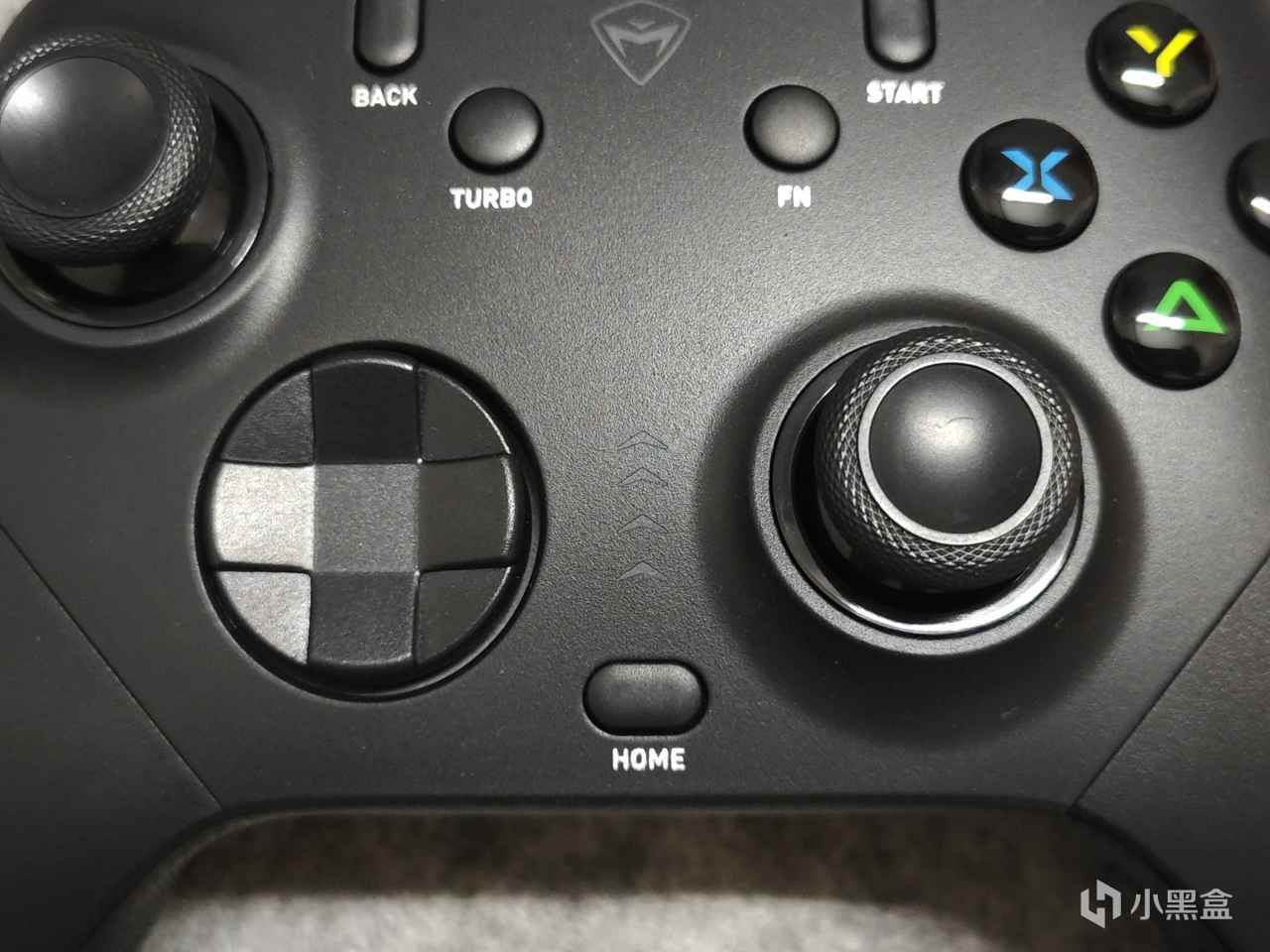 按键方面,手柄的十字键及面板上面5个功能键都是轻触开关的按键。十字键是十字转盘的八向十字键,按键精准度高,没有串键现象,打格斗游戏非常好搓招。