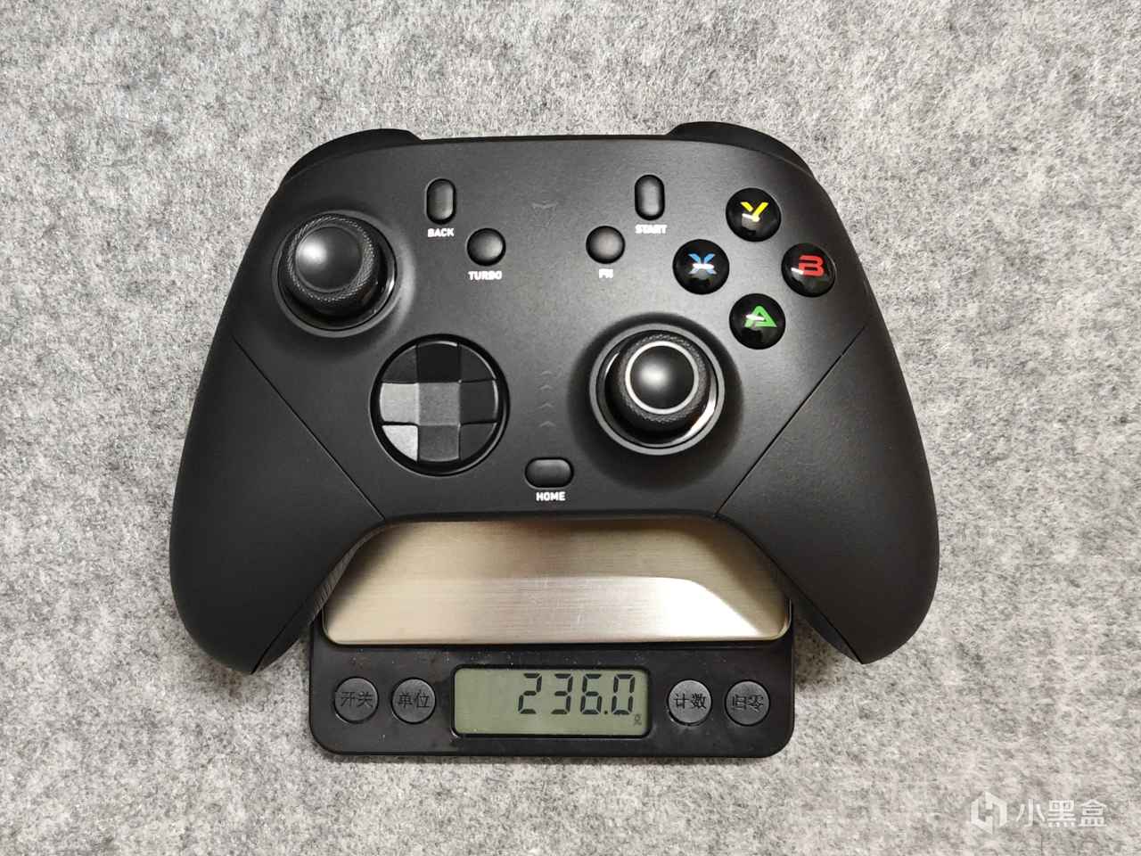 手柄的重量为236g,重量控制非常到位,毕竟人家用的是860mAh的大电池,这重量控制算是特别优秀的了。