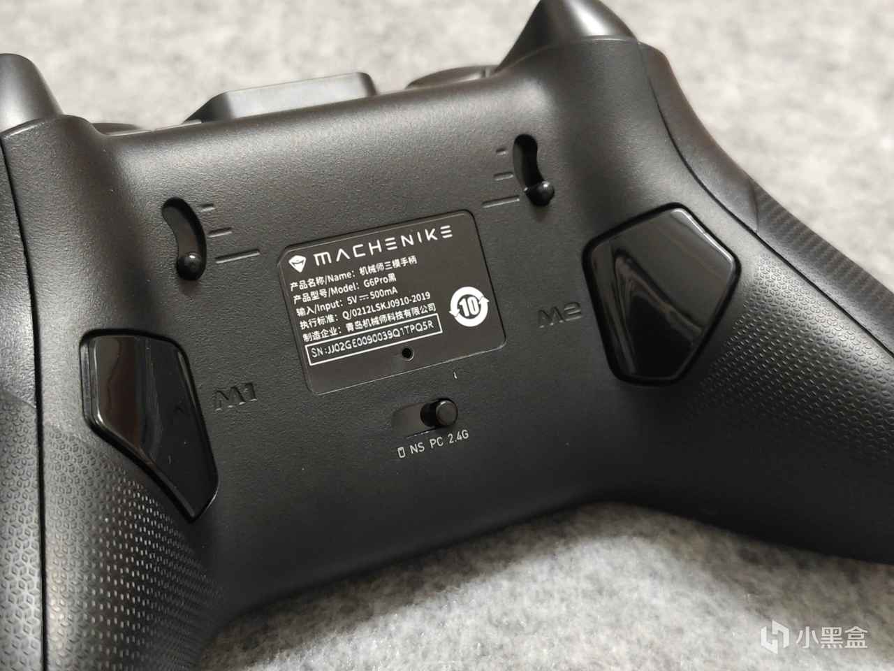 手柄的背面有2个支持宏的大背键,还有扳机的切换键以及三模的切换开关。握把处是硅胶的材质,有防滑纹设计,握持手感非常不错,防滑性能相较于传统手柄的PC材质要好很多。