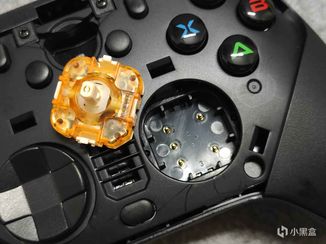 手柄的动作键采用的是机械按键,按键是凯华的微动,0.3mm的触发行程。机械按键的优点就是触发快,寿命高。按键的手感偏软,没有传统的机械按键那样硬,按压的声音也非常清脆好听。