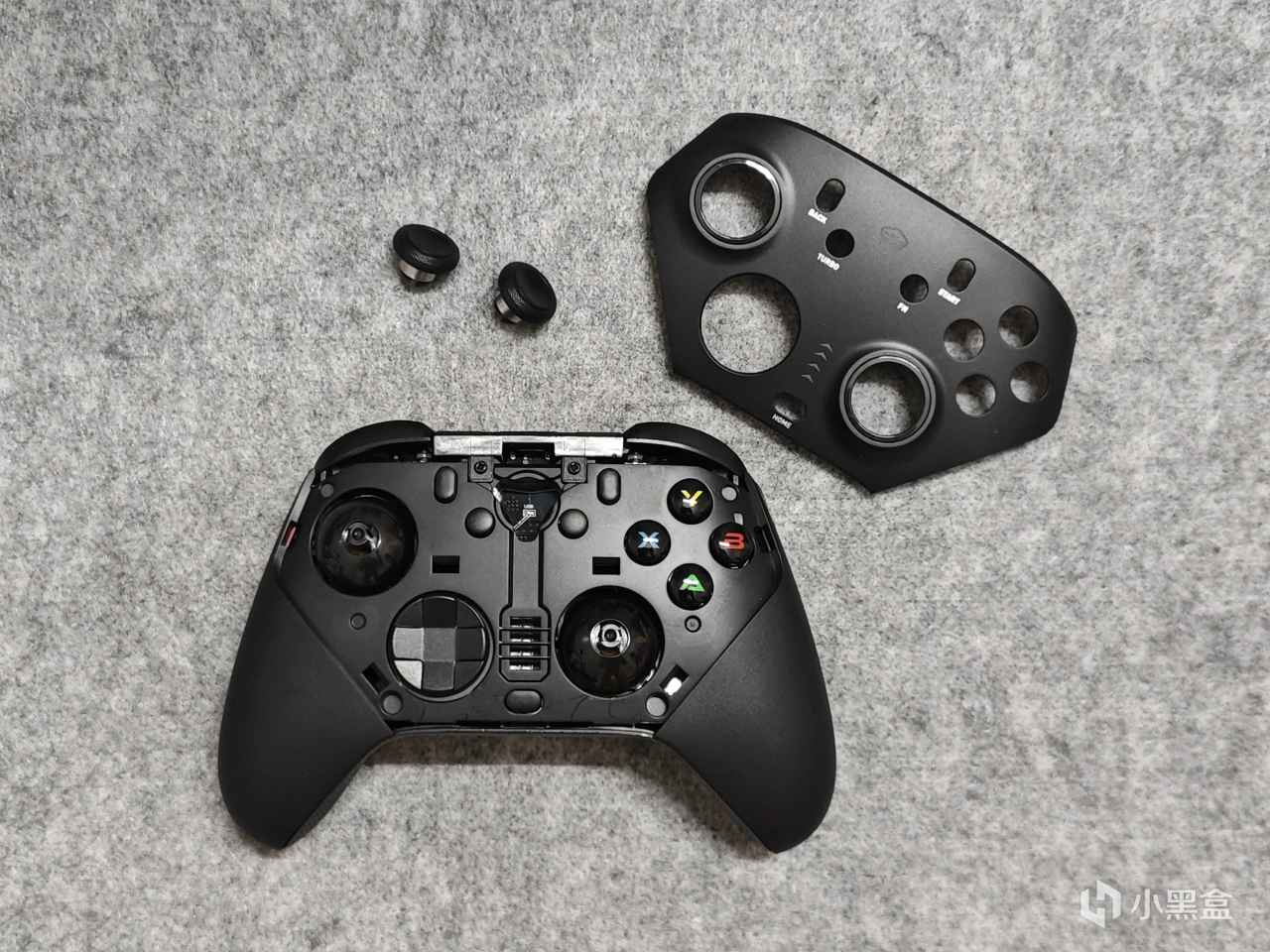 G6pro精英版是全黑的设计,按键布局为xbox布局。手柄面壳为细磨砂质感的PC材质,手感非常不错。面壳是卡扣可拆卸设计,这个面壳卡得有点紧,拆卸的时候有点困难,不过优点就是不容易掉落而且面壳的接缝特别小,不会影响观感。