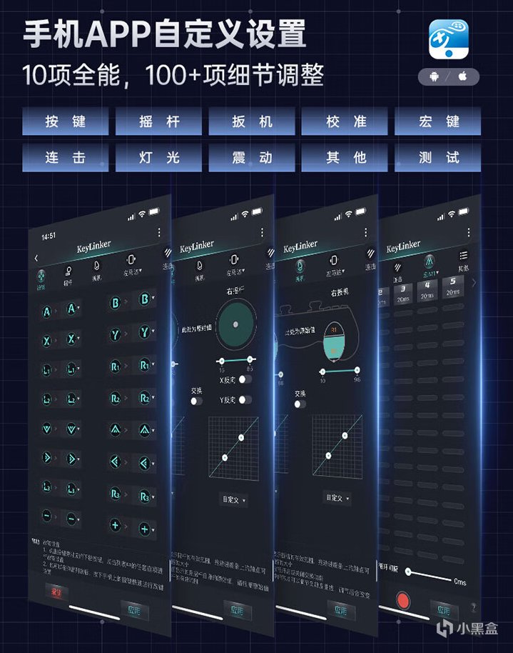 G6pro精英版的适配平台也非常多,PC、NS、TV、手机、平板、车机都能完美适配。配备六轴体感及860mAh的锂电池,续航非常长。手柄的驱动是是一个手机的APP,驱动内可设置的选项也非常丰富,可玩性非常高。